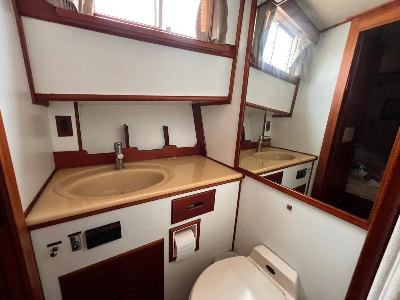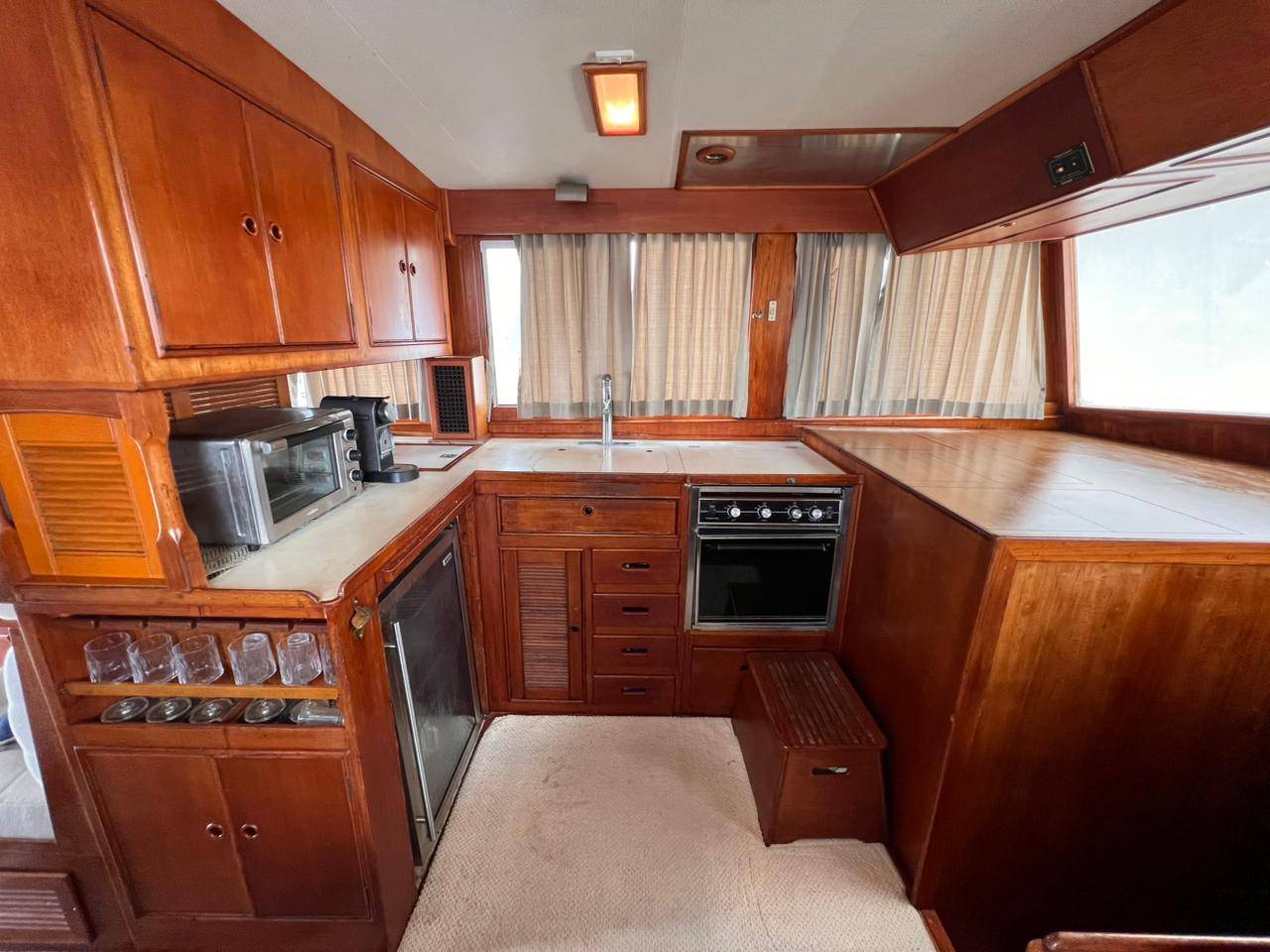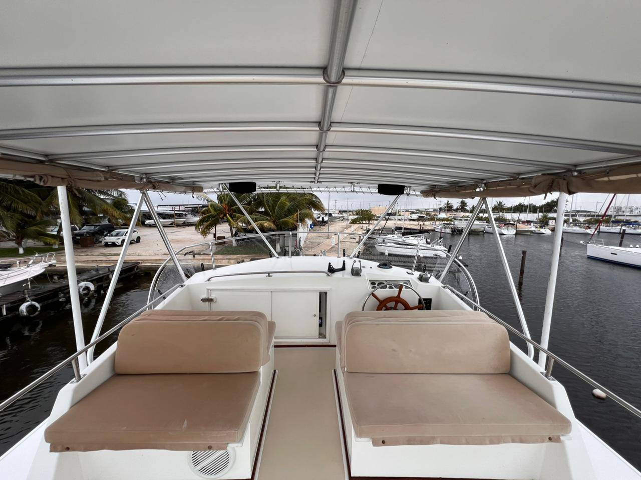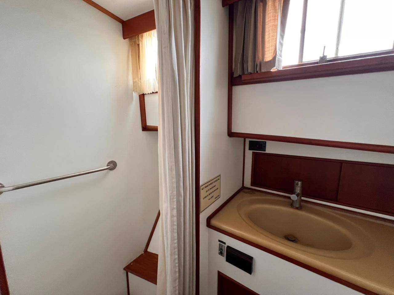Su diseño de trawler clásico combina líneas marineras con una distribución interior pensada para la vida a bordo: amplios espacios, maderas nobles, gran luminosidad natural y un ambiente cálido y acogedor. Dispone de generosas zonas exteriores, con flybridge espacioso y cubiertas laterales seguras, ideales para maniobras y disfrute al aire libre.