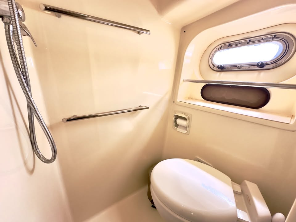 Baño con regadera e inodoro VacuFlush