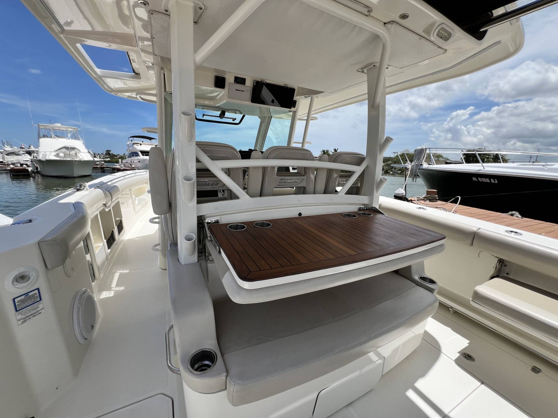 Rod Holders stainless steel gunnel mounted; at bow (4), stbd cockpit (3) , port cockpit (2) , integrated into hardtop frame (6), transom mounted (2)