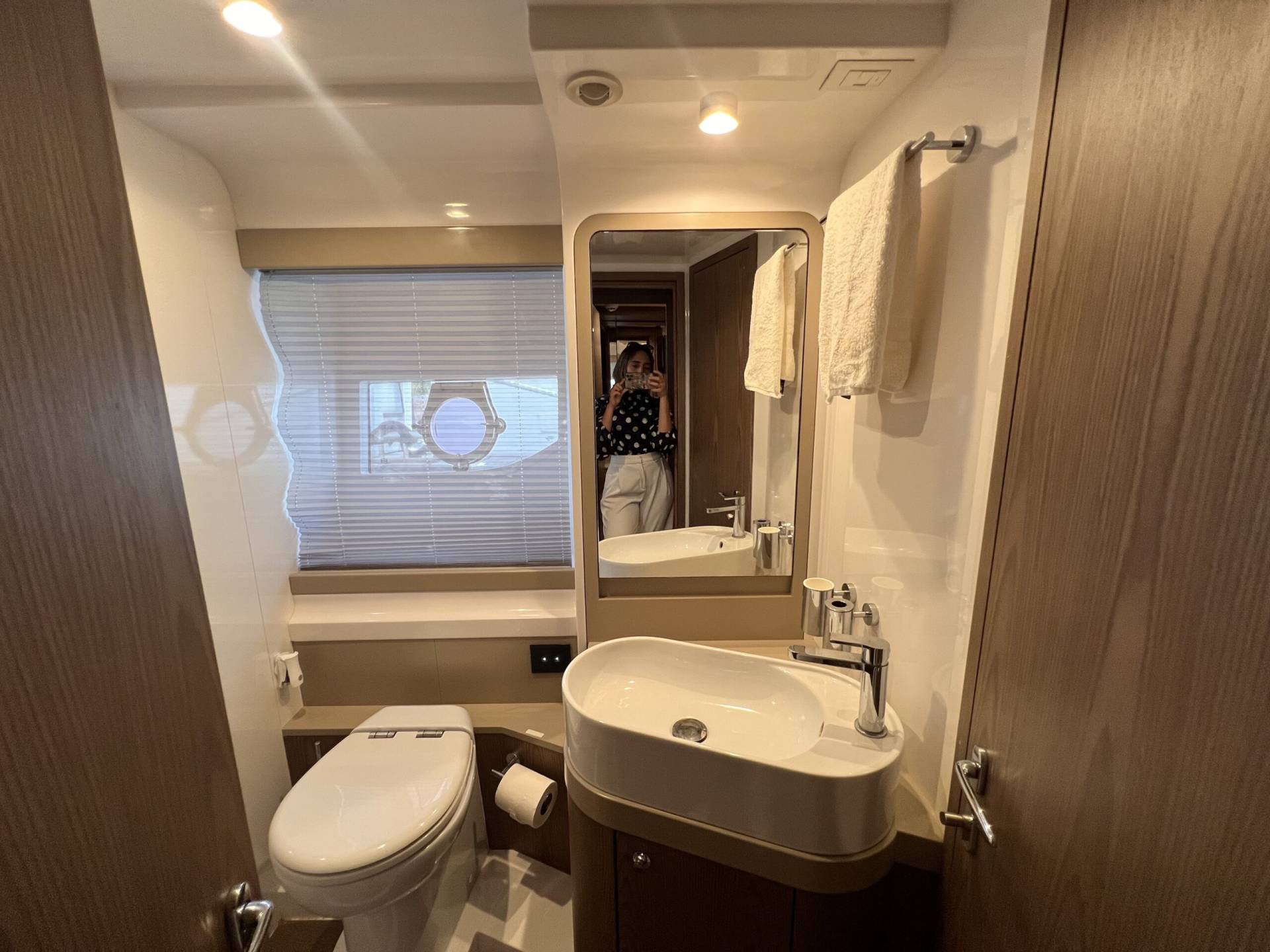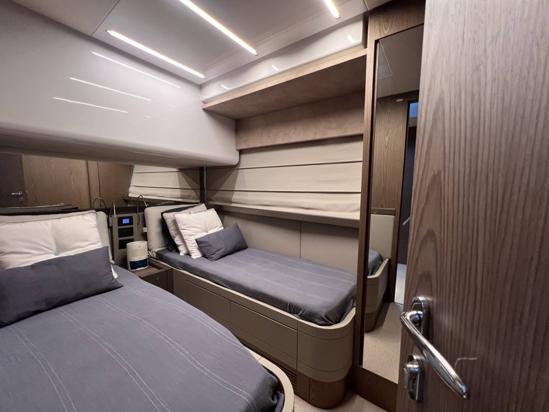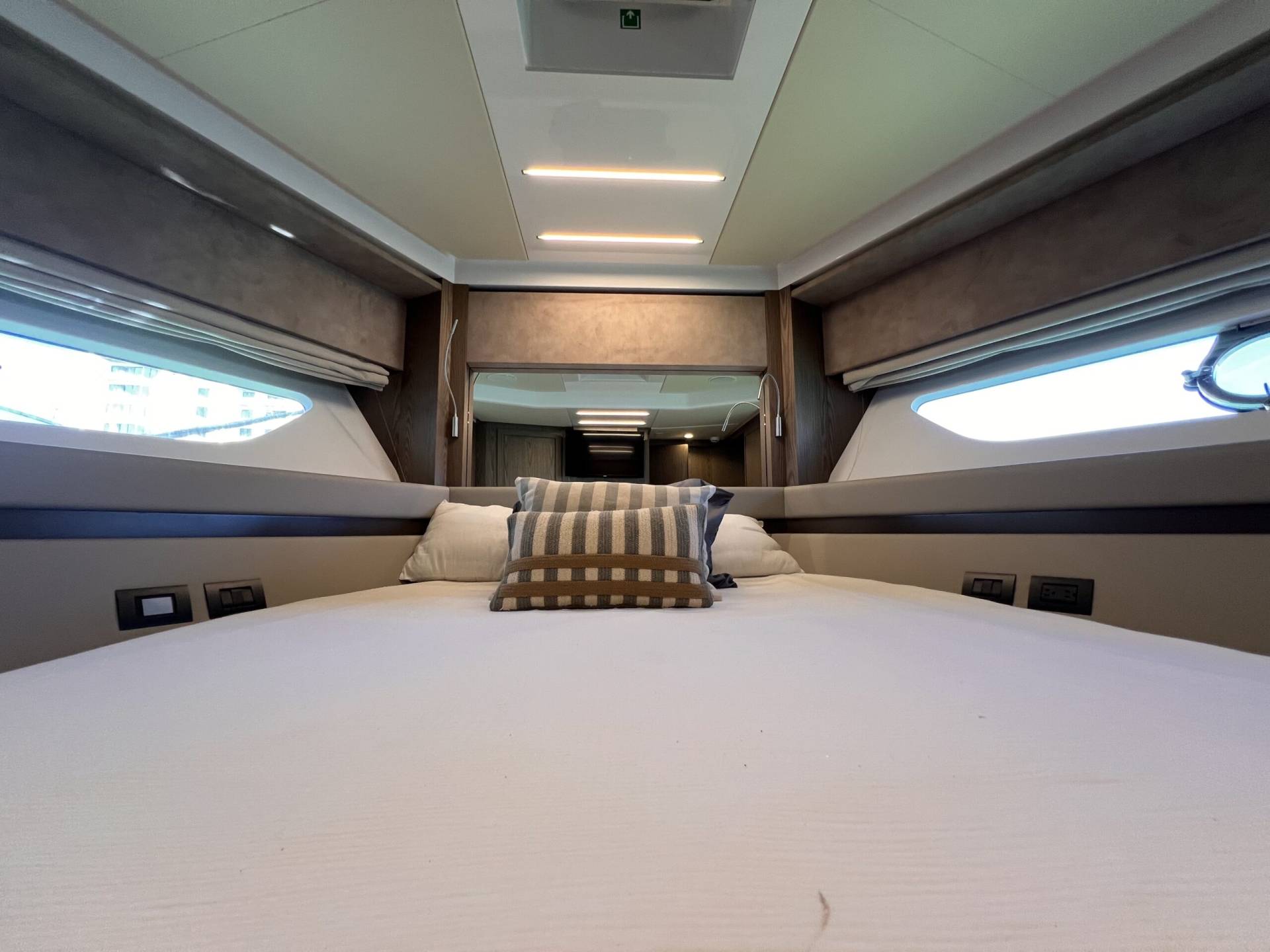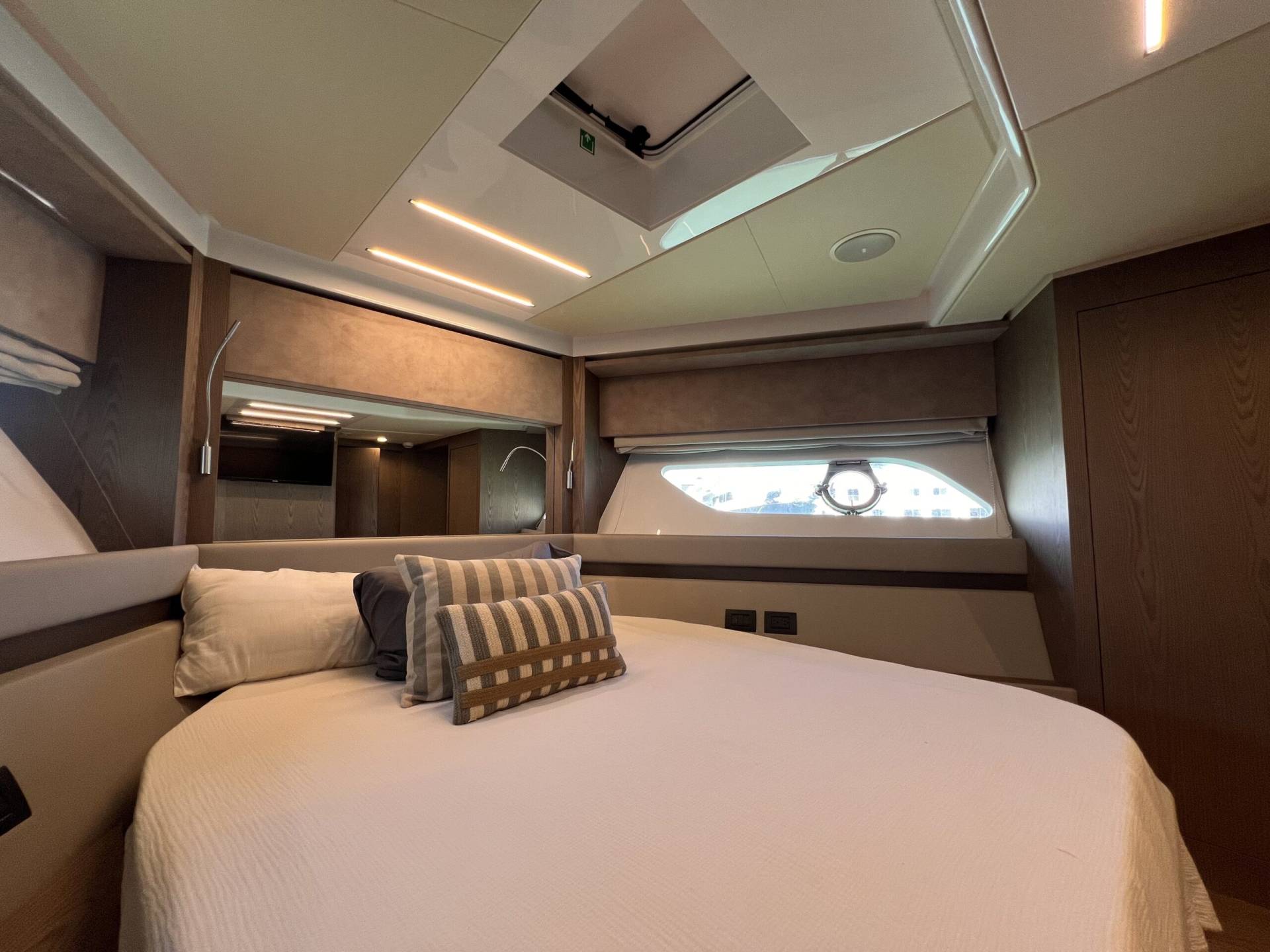 Cabina VIP en proa, espaciosa y luminosa