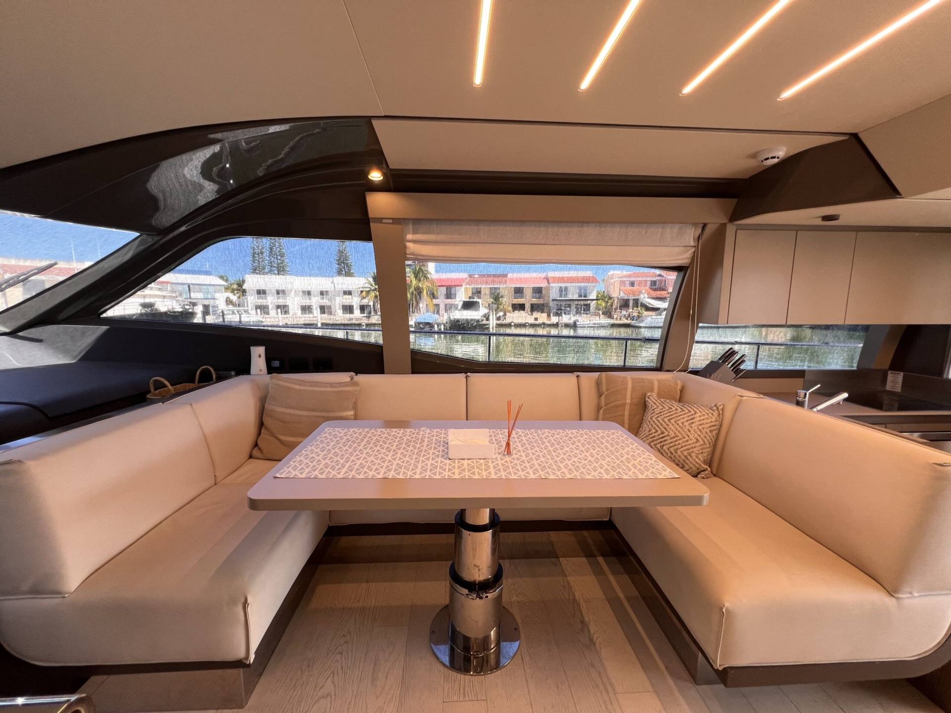 Área de comedor en el lado de estribor (sofá y mesa de comedor)